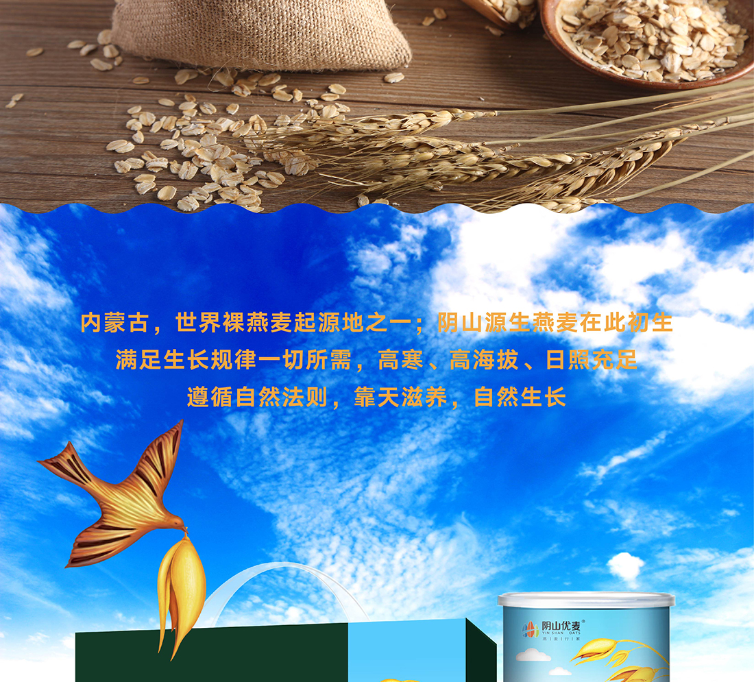 內(nèi)蒙古,世界裸燕麥起源地之一;陰山源生燕麥在此初生滿足生長規(guī)律一切所需,高寒、高海拔、日照充足;遵循自然法則,靠天滋養(yǎng),自然生長