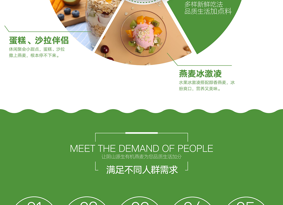 多樣吃法:直接食用、沖泡牛奶、燕麥粥、蛋糕、沙拉伴侶、燕麥冰激凌