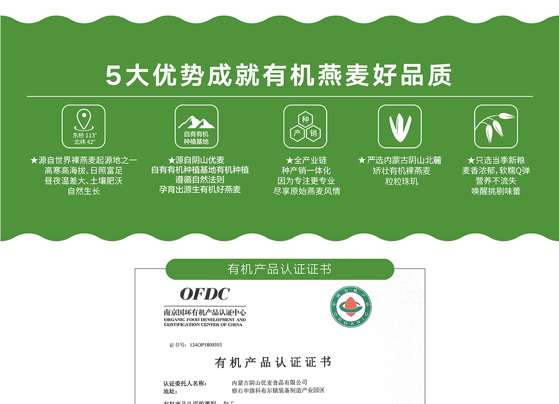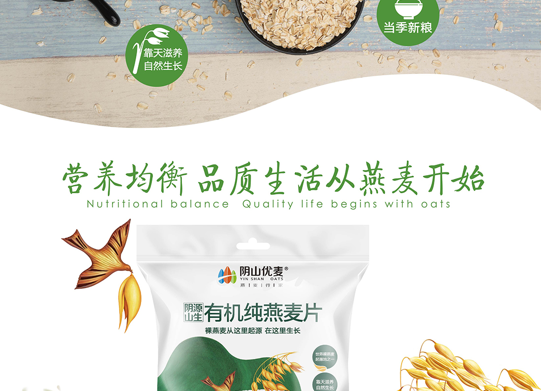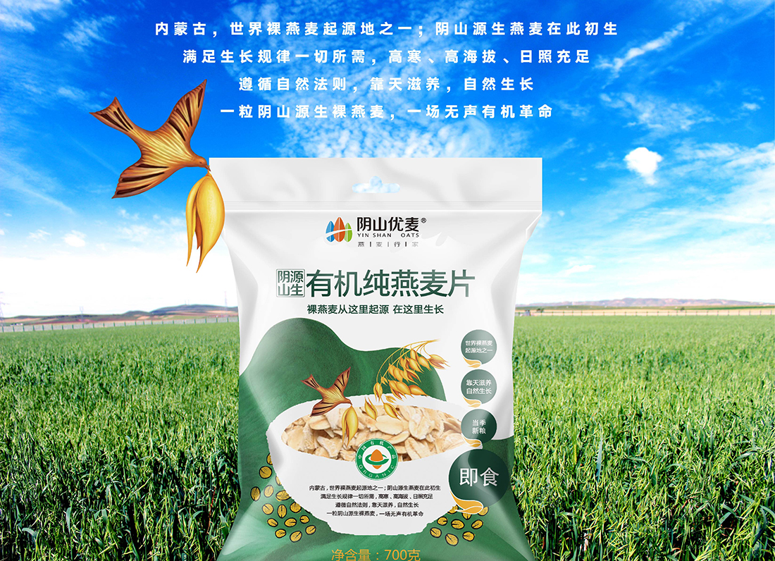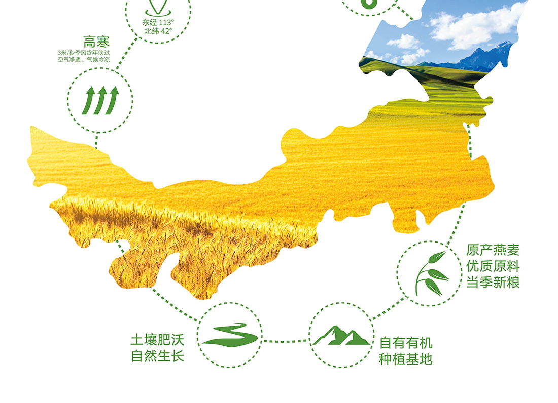 內(nèi)蒙古,世界裸燕麥起源地之一;陰山源生燕麥在此初生滿足生長規(guī)律一切所需,高寒、高海拔、日照充足;遵循自然法則,靠天滋養(yǎng),自然生長;一粒陰山源生裸燕麥,一場無聲有機革命