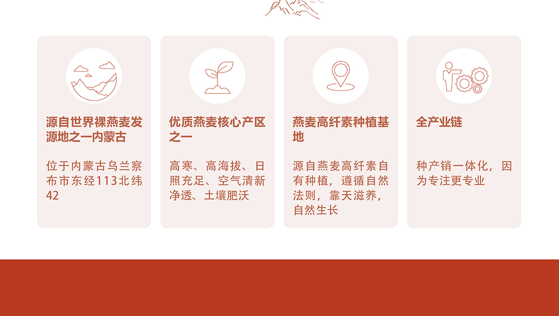 內(nèi)蒙古,世界裸燕麥起源地之一;陰山源生燕麥在此初生滿足生長規(guī)律一切所需,高寒、高海拔、日照充足;遵循自然法則,靠天滋養(yǎng),自然生長;