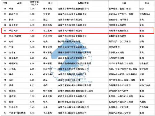 公司注冊(cè)有種薯“草原民豐”、鮮薯“敕勒川”和“塞宜德”、燕麥加工系列“陰山優(yōu)麥”等品牌商標(biāo),其中“草原民豐”2013年被授予“內(nèi)蒙古著名商標(biāo)”,“草原民豐”牌馬鈴薯系列產(chǎn)品2013年被授信為“中國(guó)著名品牌”,并榮獲“第十一屆中國(guó)國(guó)際農(nóng)產(chǎn)品交易會(huì)參展產(chǎn)品金獎(jiǎng)”。公司自主選育的馬鈴薯新品種“民豐紅”,被評(píng)定為內(nèi)蒙古“名優(yōu)特”產(chǎn)品,2010年獲“中國(guó)民營(yíng)科技創(chuàng)新成果金獎(jiǎng)”,2015年正式通過(guò)自治區(qū)品種認(rèn)定,同年榮獲“自治區(qū)主席質(zhì)量獎(jiǎng)”榮譽(yù)稱號(hào)。2017 年“民豐種業(yè)、草原民豐、敕勒川、塞宜德、陰山優(yōu)麥”品牌被評(píng)為內(nèi)蒙古農(nóng)畜牧產(chǎn)品市場(chǎng)領(lǐng)先品牌,2018年榮獲“自治區(qū)優(yōu)秀民營(yíng)企業(yè)”稱號(hào),2019年“草原民豐”品牌被評(píng)為“2019年內(nèi)蒙古馬鈴薯產(chǎn)業(yè)行業(yè)標(biāo)志性品牌”,內(nèi)蒙古品牌價(jià)值評(píng)估值9.03億元,在內(nèi)蒙古品牌總榜單排名第65位。2020年在抗擊疫情過(guò)程中,被湖北慈善總會(huì)、烏蘭察布紅十字會(huì)、烏蘭察布橋東社區(qū)等多地授予“愛(ài)心企業(yè)”稱號(hào)。