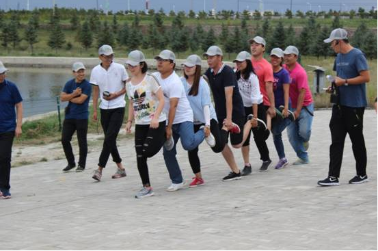 本次擴(kuò)展訓(xùn)練分別從德、智、體、美、勞五項(xiàng)趣味進(jìn)行了才藝大比拼。三組人員分別進(jìn)入各自的營地,將隊(duì)名、口號、隊(duì)歌寫在旗幟上規(guī)定時(shí)間內(nèi)展示給大家。令所有人都大跌眼鏡的是三組隊(duì)員的隊(duì)名如出一轍,完全一樣,他們都是—《戰(zhàn)狼隊(duì)》。隨后,戰(zhàn)狼三個(gè)隊(duì)展開了“肺活量大比拼”、“瞎子”背“瘸子”、“智能撲克傳遞”、“毛毛蟲速爬”、“燒烤比賽”等多個(gè)賽事。