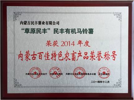 此次評選活動自北方新報、正北方網、《北方新報》官方微信公布推選產品以來,來自全區(qū)各地11.2萬人次的消費者對112家企業(yè)的539種推選產品進行了投票。最終,經過自治區(qū)農牧業(yè)廳、內蒙古食品藥品監(jiān)督管理局、內蒙古龍頭企業(yè)協(xié)會的專家結合企業(yè)報名材料、企業(yè)年檢記錄、產品檢驗報告及消費者投票等多項內容,推選出了120種內蒙古百佳特色農畜產品名單。我公司“草原民豐”有機馬鈴薯榮獲2014年度內蒙古百佳特色農畜產品榮譽稱號。